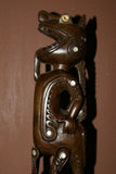Rare Hand Carved Wood & Mother of Pearl Chief Power staff, magic amulet: Dragon sticking his tongue to intimidate & scare evil spirits, Trobriand Islands, Massim Culture, Kula Ring, South Pacific (1A1)