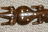 Spendid example of melanesian art. Great unique original carving with mother of pearl inlays collected direct in the remote Trobiand islands.