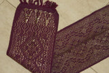 Old Ceremonial Balinese Textile Hand woven Burgundy Brocade Damask Songket Setagen Sabuk Dowry Belt with Metallic Gold Threads 58" x 6.5" (SG52) Collected in Klunkung Regency, Bali & belonging to Nobility royalty
