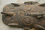 SOUTH PACIFIC OCEANIC ART HAND CARVED TRIBAL CLAN ANCESTRAL POLYCHROME SPIRIT DANCE MASK WITH PIGMENTS BUSH TWINE USED DURING SECRET CEREMONIES & INITIATIONS MINDIBIT VILLAGE MIDDLE SEPIK PAPUA NEW GUINEA 12A10 COLLECTOR DESIGNER DECOR 24"x12"x 3.5"