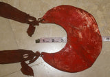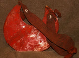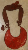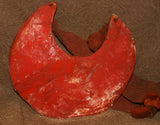Museum Bride Price Currency, Rare Very Old Ceremonial Moka Kina Shell Necklace (Huge Mother of Pearl Crescent) Pectoral Collected from the Foi Tribe (Papua New Guinea), Mid 1900’s, Red Pigments & neck band, Highly Collectible. KINA19