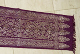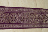 Old Ceremonial Balinese Brocade Damask Wedding Songket Belt. Burgundy Red Textile cloth Embroidered with Metallic Gold Threads 60" x 9" (SG23) Collected in Klunkung Regency, Bali & belonging to Nobility royalty