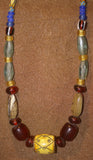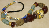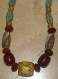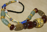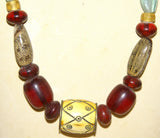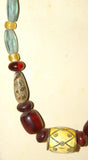 Rare Tribal Ethnic Dayak Iban Tribe Talisman Necklace: Antique Hand Crafted Magical Lukut Sekala , Old Trade Glass Beads, Amber beads, Buffalo Bone Hand Etched Beads, Shells, Chinese Coins, collected in 1980’s Borneo Aristocrat Owner, Indonesia. NB4