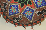 Vintage, Now Rare, Ceremonial Conical Coolie Sun Hat, Hand Beaded Minute Mosaic Motifs, Deer & Lotus Flowers, Nassa Shells, 161A2, Collected in Sumatra, 1980’s but Older. Bride Price, Currency. 21” Stand Included.nute Colorful