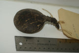 OLD VERY RARE UNIQUE HAND CARVED SCARCE ETHNIC TRIBAL COLLECTOR SPOON, ONCE HAND CARVED OUT OF A SMALL COCONUT SHELL & USED, LONG AGO, TO EAT, DRINK OUT OF, OR TO SCOOP WHITE LIME POWDER IN OR OUT OF A CONTAINER AFTER IT HAD BEEN CRUSHED DOWN.