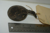 OLDER VERY RARE & UNIQUE ETHNIC PRIMITIVE DRINKING BOWL OR SCOOP WITH FESTOONED HANDLE, TRIBAL SPOON HAND CARVED OUT OF A COCONUT SHELL, TAMI ISLAND, HUON GULF, SOUTH SEAS, PNG, NEW GUINEA. SP6C. GOOD PATINA