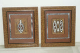 PAIR OF CUSTOM FRAMED Sentani Tapa Kapa Bark Cloths from Papua New Guinea. Handpainted with Natural Pigments by Tribal Artist: Abstract Stylized Insect and Butterfly Motifs 12.5" x 10.25" (DFBA1 & DFBA2)