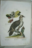 Huge Folio size plate in excellent condition: Johann Michael Seligmann. Verzameling Van Uitlandscheen Zeldzaame Volgelen, Amsterdam: Jan Cristian Seep, 1772-1781. Folio. fine laid chain link paper, crown and shield watermark. Fine hand colored etched plate. After George Edwards and mark Catesby by Seligmann. Very rare subscribers page list just 90 copies accounted for and 5 of those to the publisher. Considered superior to the Nunremburg edition, with better hand coloring. A number of these bird plates depict flora and scenic backgrounds not contained in the originals The print is accompanied by a copy of the beautiful title page and a copy of the French descriptive text when available. This work is 250 years old and it is rare indeed to find these very scarce prints in such good condition.
