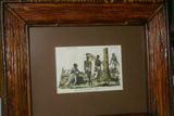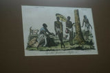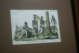 RARE & AUTHENTIC 19C FRAMED ITALIAN ANTIQUE H.C HAND COLORED HISTORICAL ENGRAVING OF AUSTRALIA ABORIGINES FROM BERNIERI ANTIQUE TRAVEL BOOK MATTED AND CUSTOM FRAMED IN BAMBOO FRAME