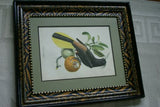 Framed and matted professionally in hand-painted frame with 2 acid free mats (one mat also hand painted with intricate designs French style).