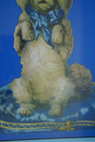 Victorian Scrap Of An Adorable Begging Dog On A Blue Satin Tufted Pillow