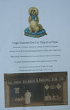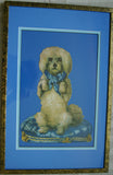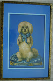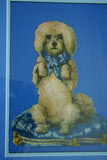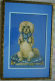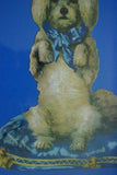 Huge Victorian Die Cut: White Poodle Dog on a Blue Pillow.
