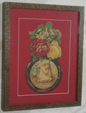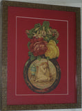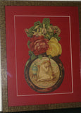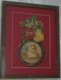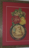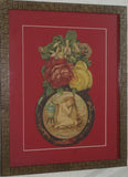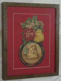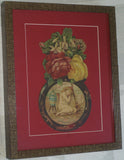 RARE EPHEMERA AMERICANA ANTIQUE WHIMSICAL ART, FRAMED ORIGINAL 1880 LARGE VICTORIAN TRADE CARD AD EPHEMERA SUPERB DIE-CUT, ITEM DFPO2Y, HAND PAINTED DETAILED FRAME, 2 RED MATS 15" x 12 1/2” DESIGNER COLLECTOR PRECIOUS COLLECTIBLE