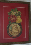YOU ARE BUYING ONE FRAMED (HAND PAINTED FRAME WITH GOLD BASKET WEAVE TIME CONSUMING PATTERN, SIGNED BY THE ARTIST THAT CREATED IT), DOUBLE-MATTED AND UNDER NON GLARE GLASS.