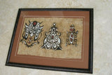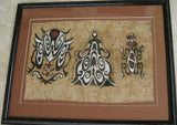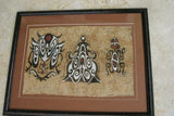 RARE TAPA BARK CLOTH ART FROM PAPUA NEW GUINEA. PROFESSIONALLY CUSTOM FRAMED IN A HAND PAINTED FRAME CREATED TO MATCH THE ART, WITH 2 MATS: ALSO, TAPA BARK CLOTH WAS HAND PAINTED BY NATIVE, WITH NATURAL PIGMENTS (TRIBAL ARTIST). MOTIF OF ELABORATE INSECTS.