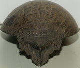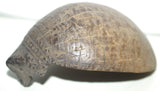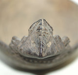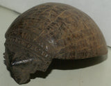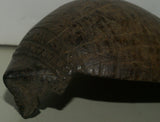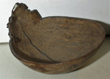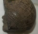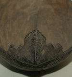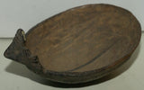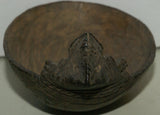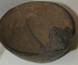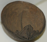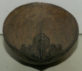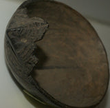 From our private collection, this old coconut shell spoon, used for liquids in the past, is an outstanding example of a hand crafted everyday tool for the Azera (Adzera) people, Markham Valley, Morobe Province, Papua New Guinea. It once belonged to an important tribal member, a “Big Man”. The Ompi has a hand etched Frogmouth Bird Head Figure on the handle. Good patina.