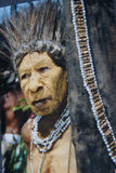 The Ompi has a hand etched Animal Figure on the handle, possibly a cuscus, with a nose, mouth & 2 holes for eyes, also used, once, to pass a hand twisted bark twine, to be worn around the neck. Good patina.