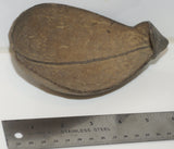 Very Rare Older Coconut Shell Cannibal Spoon or Ompi from the Azera (Adzera) People, Markham Valley, Morobe Province. Papua New Guinea. Private Collection, Mid 20th Century. ITEM SP3C comes with metal custom stand, highly collectible.