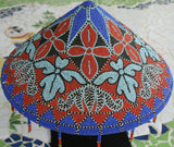 Rare Old Tribal Wedding Ceremonial Hand Beaded & Colorful Conical Coolie Hat, which once belonged to Sumatra royalty, Indonesia.
