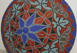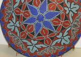 Vintage, Now Rare, Ceremonial Conical Coolie Sun Hat, Hand Beaded Minute Colorful Mosaic Motifs, Orchid, Leaves & Lotus Flowers, Nassa Shells: 161A4, Collected in Sumatra, 1980’s but Older. Bride Price, Currency. 21” Tall Display Stand Included.