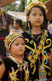 Beads were used, not only in necklaces and bracelets, but in intense beadwork to create fine decorations. Orang Ulu baby carriers, a reed basket open on one side, used by women to carry their young infants, were embellished with such fine beadwork, with a wild boar or leopard tooth finish. Large beads and hawk’s bells were attached to the upper rim of the carrier and served to soothe the toddler with their tinkling, in addition to indicating status. The Orang Ulu believed that rank and its associated symbolism were serious considerations.