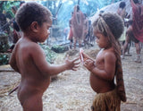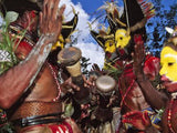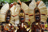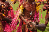 The kundu is a single-head hourglass drum of Papua New Guinea. “Kundu” is a generic name for such drums, but each of the hundreds of tribal groups on the island of New Guinea and many of its surrounding islands has a local name for this drum type (for example, see the entry for the tifa of the Asmat people). Based on morphological and decorative clues, the kundu very likely originated amongst the Iatmul people of the Middle Sepik River region of Papua New Guinea. A number of similar Iatmul drums can be found in museum collections around the world and some of these are named kwangu (or kangu or kwang-gu), which would appear to be the term for such kundu drums in the language of the Iatmul.