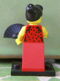 BRAND NEW, NOW RARE, RETIRED LEGO MINIFIGURE COLLECTIBLE: FLAMENCO DANCER WITH FAN + BASE (Serie 6) RELEASED IN 2012, 6 PIECES.