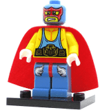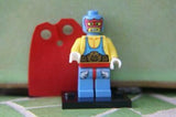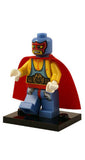 BRAND NEW, NOW RARE RETIRED COLLECTIBLE LEGO MINIFIGURE 8683: SUPER WRESTLER + CAPE + BLACK BASE (Serie 1) 5 PIECES, YEAR 2009.