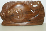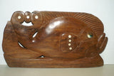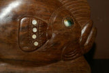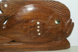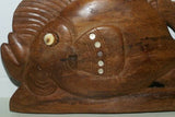 Rare South Pacific Island Primitive Art Mother Pearl Hand carved Wood Fish 1A19