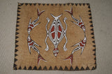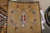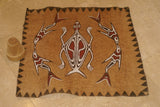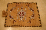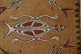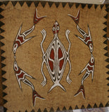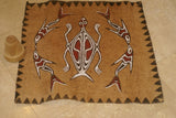 Rare Tapa Bark Cloth (Kapa in Hawaii), from Lake Sentani, Irian Jaya, Papua New Guinea. Hand painted by a Tribal Artist with natural pigments: Spiritual Stylized Motifs of fish and water bugs. 21" x 20,5" (no 38)