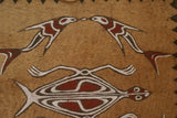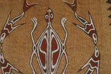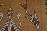 Rare Tapa Art (Kapa) Loin Cloth from Lake Sentani, Irian Jaya. Bark Cloth Hand painted with Natural Pigments by Tribal Artist from Papua New Guinea. Abstract Geometric Motifs of fish swimming around a water bug.