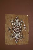 Rare Tapa Bark Cloth (Kapa in Hawaii), from Lake Sentani, Irian Jaya, Papua New Guinea. Hand painted by a Tribal Artist with natural pigments: Spiritual Stylized Motifs of shields with eyes & fish. 21" x 17" (no 28)