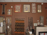 Rare Tapa Bark Cloth (Kapa in Hawaii), from Lake Sentani, Irian Jaya, Papua New Guinea. Hand painted by a Tribal Artist with natural pigments: Spiritual Stylized Shield Motifs 21 1/2" x 13" (no 22)