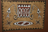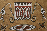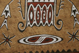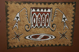 Rare Tapa Bark Cloth (Kapa in Hawaii), from Lake Sentani, Irian Jaya, Papua New Guinea. Hand painted by a Tribal Artist with natural pigments: Spiritual Stylized shield, Fish, Water Bugs Motifs 27" x 18" (no 40)