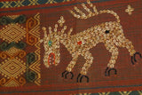 Hand woven Ceremonial Hinggi Sumba Songket Ikat Textile 55"x 13.75" created with symbolic animal motifs & geometrics. Tapestry is Hand spun Cotton, Dyed with Natural Pigments. Horse Motif Created with Hand sewn tiny Nassa Shells (SR39) rust red background