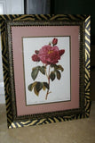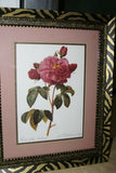 SIGNED UNIQUE DETAILED ARTIST HANDPAINTED FRAME MATTED REDOUTE PRINT PINK ROSES