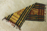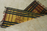Unique Hand Woven Ceremonial Hinggi Sumba Songket Ikat Textile (33" x 13") with symbolic animal motifs & geometrics. Tapestry Made with Hand spun Cotton, Dyed with Natural Pigments ITEM SR59 Colorful golden yellow, rust red, green & blue