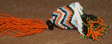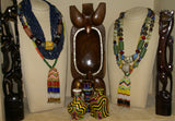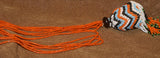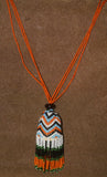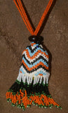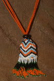 Unique colorful Tassel attached to a triple strand of trade beads.