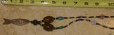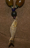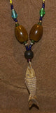 Unique Earthtones Hand crafted Ethnic Glass Trade Beads Necklace with Buffalo Bone Hand Carved Pendant of Fish, Zodiac Pisces, Borneo Kalimantan, Indonesia NECK44 + 1 Flapper Coconut necklace.