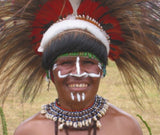Artistic expression in the Highlands is conveyed largely through body art. Diverse in both media and application, the major components of Highlands body ornamentation include bird of paradise plumes, body paint, and an enormous variety of decorative objects made from shell, teeth, beetles, orchid stem, fur, bone, bark, wood, and fiber. (Moriarty recognized the importance of this art and its central position in the broader context of Highlands art. A visionary in any age, he not only developed a unique collection of body decoration from the Highlands of New Guinea, but saw to it that this collection remained intact by donating it to the AGNSW. Today it is part of what is possibly the world's most important accumulation of this art.)
