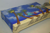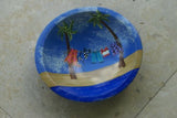 Unique Cabin or Home Décor: Large Glass Ball Ornament with Beach Palm Trees Ocean Island Motif delicately Hand painted & Signed by Florida artist