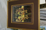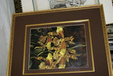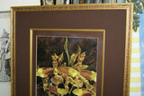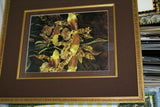 Artist Alexandre Brun Orchid Art Odontoglossum flower Print Framed in Unique Designer Frame with minute hand painted detail of basket weave plus 1 mat, very large 21.75" X 18.5" extremely decorative, home wall décor, one of a kind.