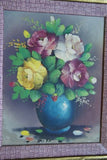 Framed Original Authentic Hand Painted Art on canvas Rose bouquet colorful signed
