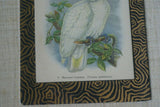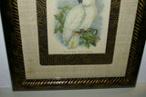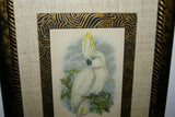 UNIQUE OLD LITHOGRAPH ART BLUE EYED COCKATOO CACATUA OPHTHALMICA PROFESSIONALLY X2 SILK MATTED & FRAMED IN SIGNED HAND PAINTED FRAME + GIFT OF A FREE BEAUTIFUL MATTED BARRABAND PARROT PRINT. PRICED AT FRACTION OF RETAIL