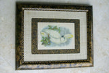 Professionally framed in a unique custom frame hand painted and signed by the artist created to enhance the lithograph and give it a Victorian feel, the print is also framed by 2 acid free mats, one hand painted with minute details and the other lined with raw silk from Nepal (that mat alone ran $50.00)