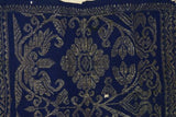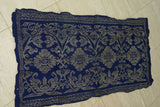 Museum Quality Old Brocade Damask Wedding Sarung Songket Textile Embroidery 43"x21" belonging to Balinese Nobility royalty. Cobalt Blue with Metallic Gold Threads Hand woven with Handspun Cotton & Silk in a beautiful pattern Klungkung Regency, Bali (SG35)